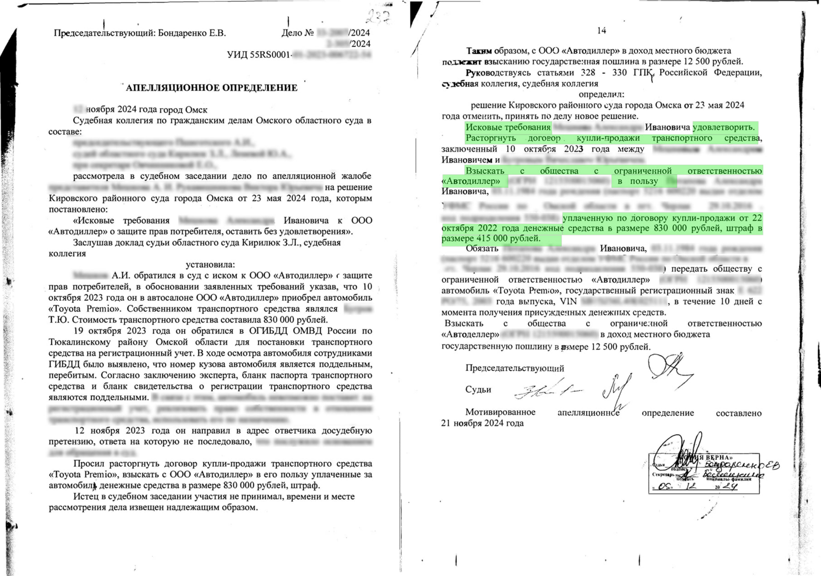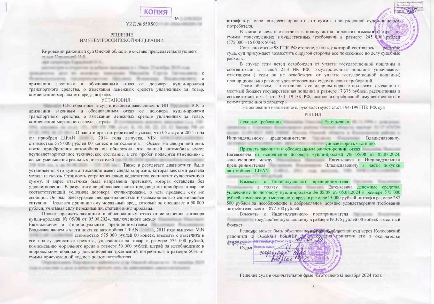 Продавец предоставил ложные сведения о пробеге, комплектации или состоянии машины